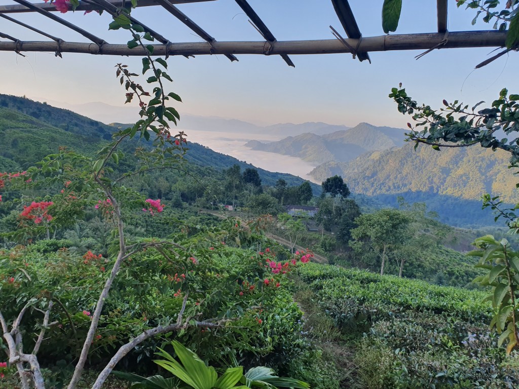 Because of its easternmost position, the sun gets up very early at Nagaland. So at 5 30 am we are sitting outside in front of a bamboo table, sipping local tea. We are at a height of 4000 ft and in front of us there’s a layer of cloud stretching to the infinity.It is eerily silent.We are on the top of a hill,and all around us are tea gardens whose produce we are sipping.