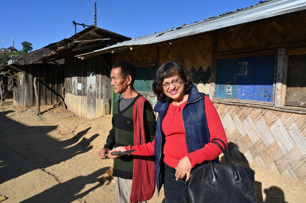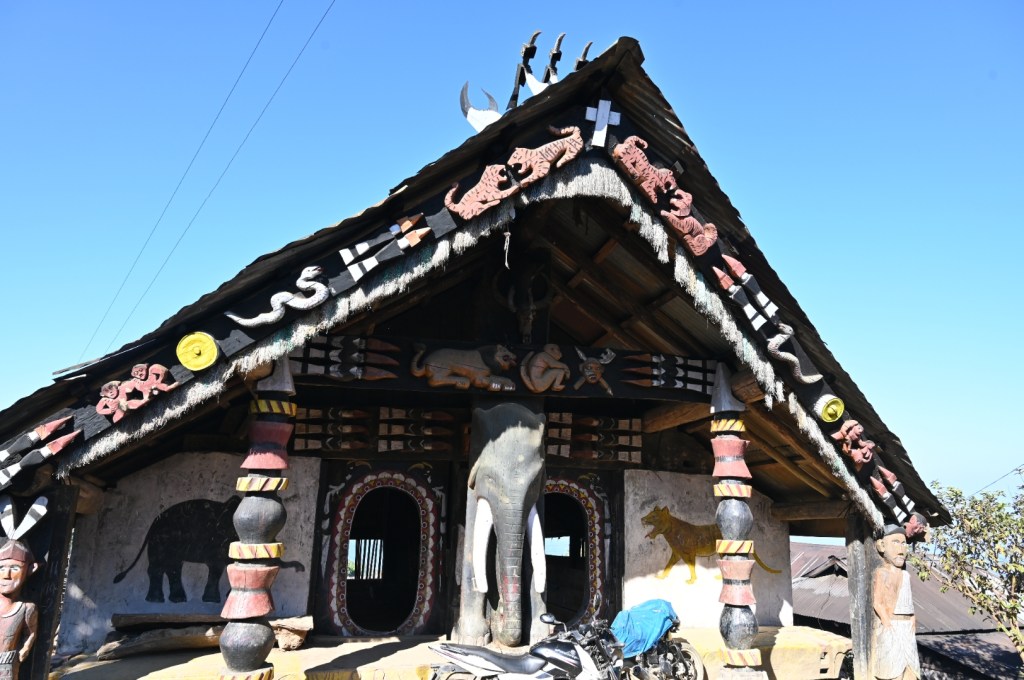 The king ‘s house at Lungwa straddles both countries. The border goes through the center of the house.Once upon a time ,he had 51 wives,but these days he must be feeling the pinch.It is a tourist attraction now,perched on top of a hill.On the Myanmarese side ,one can see a road being built.I aim told that the konyak tribesmen also have a sizable population on the myanmarese side.