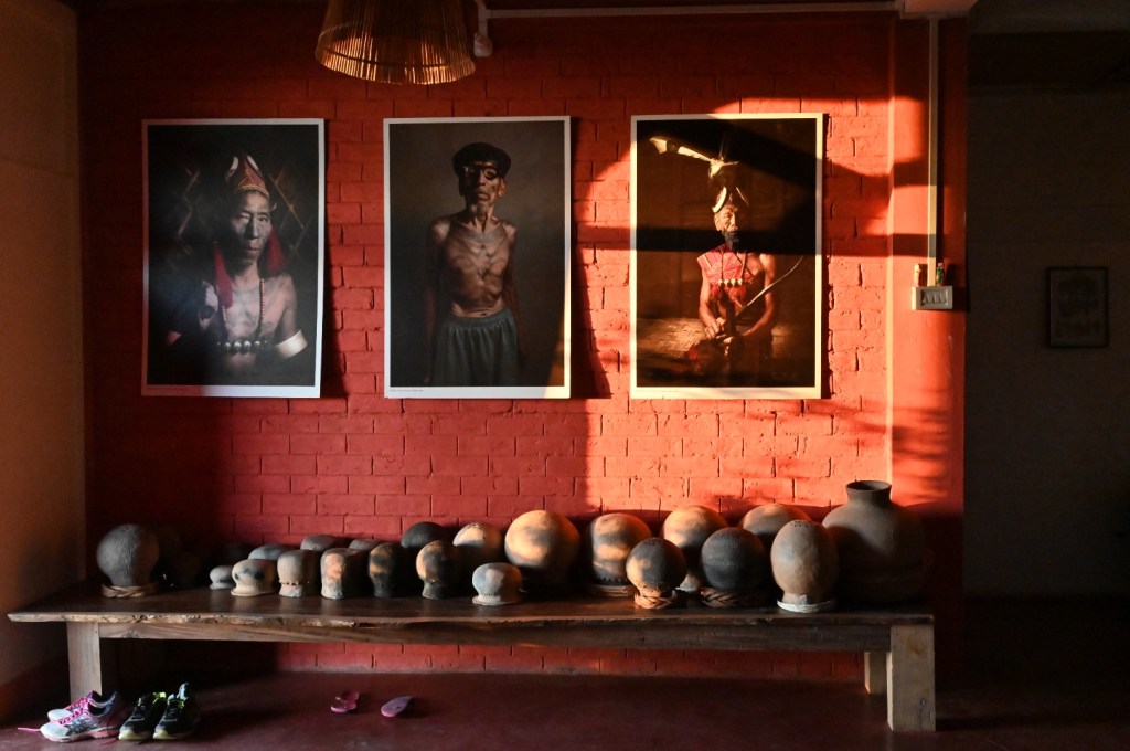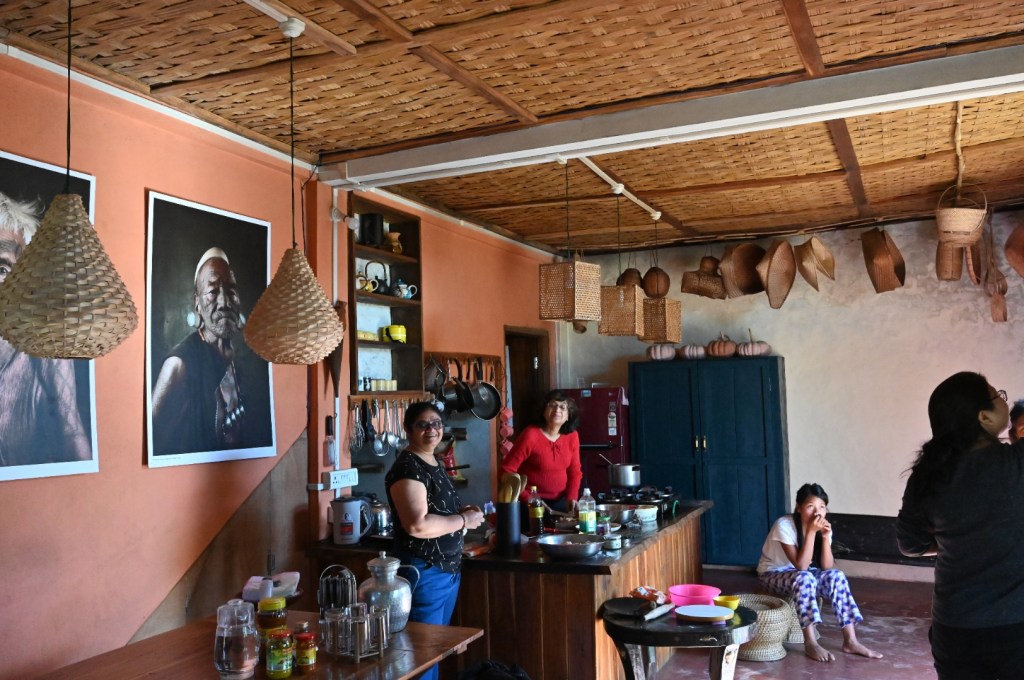 Phejin,our host met us and made us comfortable.The homestay is a 2 bedroom house where the owner stays.When tourists come,she vacates the house and moves to the staff quarters.We were given her bedroom to stay,Sushanta got the other bedroom. It is a nice and comfortable house with big bathrooms and a large lobby with a long wooden dining table.Above the dining table hangs large photos of Tattoed headhunters of Konyak.