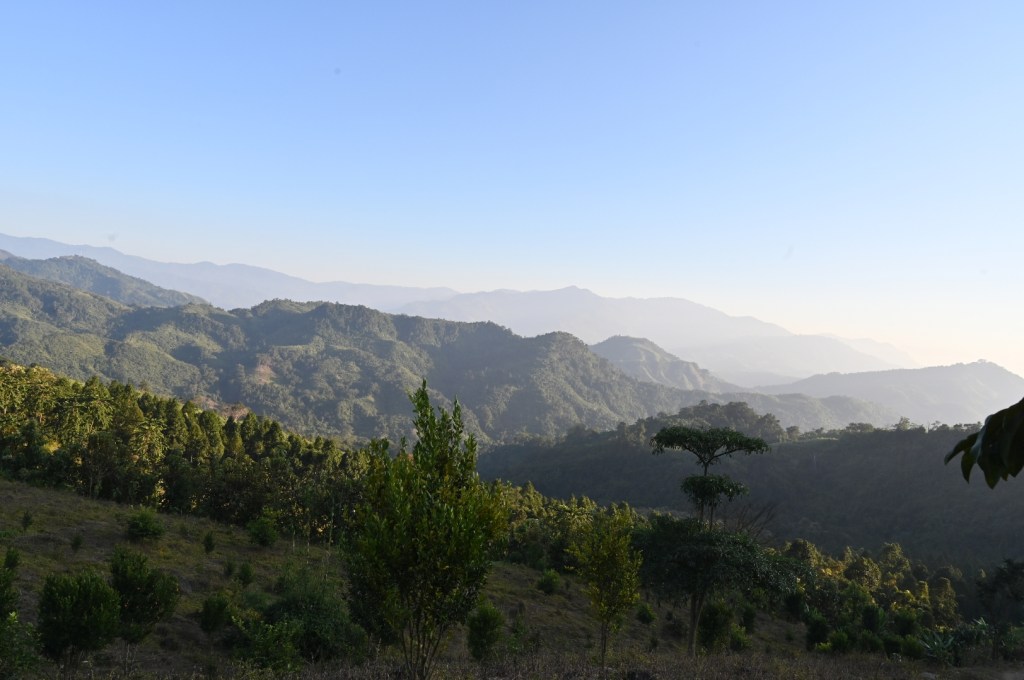 The ladies decide to have Luchi torkari for breakfast and there being no maida,we take our jeep to the village.Everybody knows Phejin.No wonder since half of the village work for their family.All able-bodied men carry a machete in their hands.The sky is brilliantly blue.